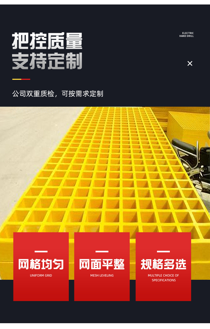 山東環(huán)通復(fù)合材料有限公司是從事玻璃鋼格柵的生產(chǎn)廠家,公司位于山東濰坊安丘市,產(chǎn)品分為格柵和格柵蓋板,玻璃鋼格柵主要分為25*25,38*38,42*42。顏色分為:綠色,紅色,灰色,黃色,藍(lán)色等。公司生產(chǎn)玻璃鋼產(chǎn)品為:公司生產(chǎn)玻璃鋼產(chǎn)品為:玻璃鋼儲(chǔ)罐,玻璃鋼管道,玻璃鋼夾砂管,玻璃鋼防腐,玻璃鋼冷卻塔,玻璃鋼化糞池,玻璃鋼保溫罩等。