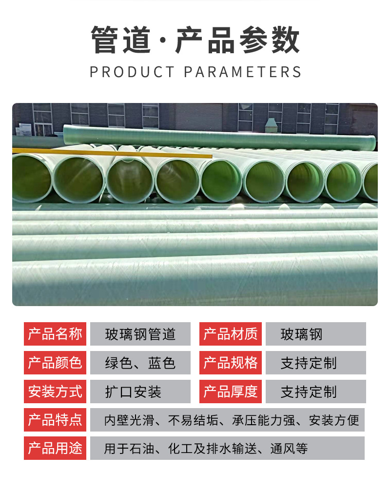 山東環(huán)通復(fù)合材料有限公司位于山東濰坊安丘市,成立于2011年,是從事玻璃鋼管道行業(yè)的生產(chǎn)廠家,玻璃鋼夾砂管道分為夾砂管和工藝管,規(guī)格型號為:50mm、100mm、150mm、200mm、250mm、300mm、400mm、500mm、600mm、80mm、1000mm、1200mm等,顏色主要為綠色、藍(lán)色、灰色等。公司產(chǎn)品主要分為:玻璃鋼管道:玻璃鋼夾砂管,玻璃鋼工藝管,玻璃鋼化糞池,玻璃鋼格